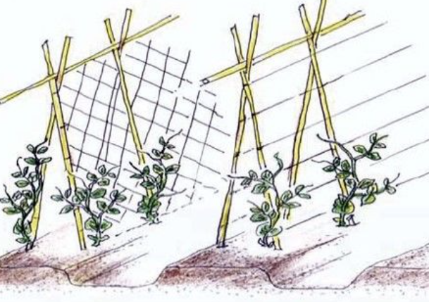 완두콩 줄기는 60~100cm까지 자라는 덩굴성 작물이므로 지주를 세워 위로 유도해야 합니다.